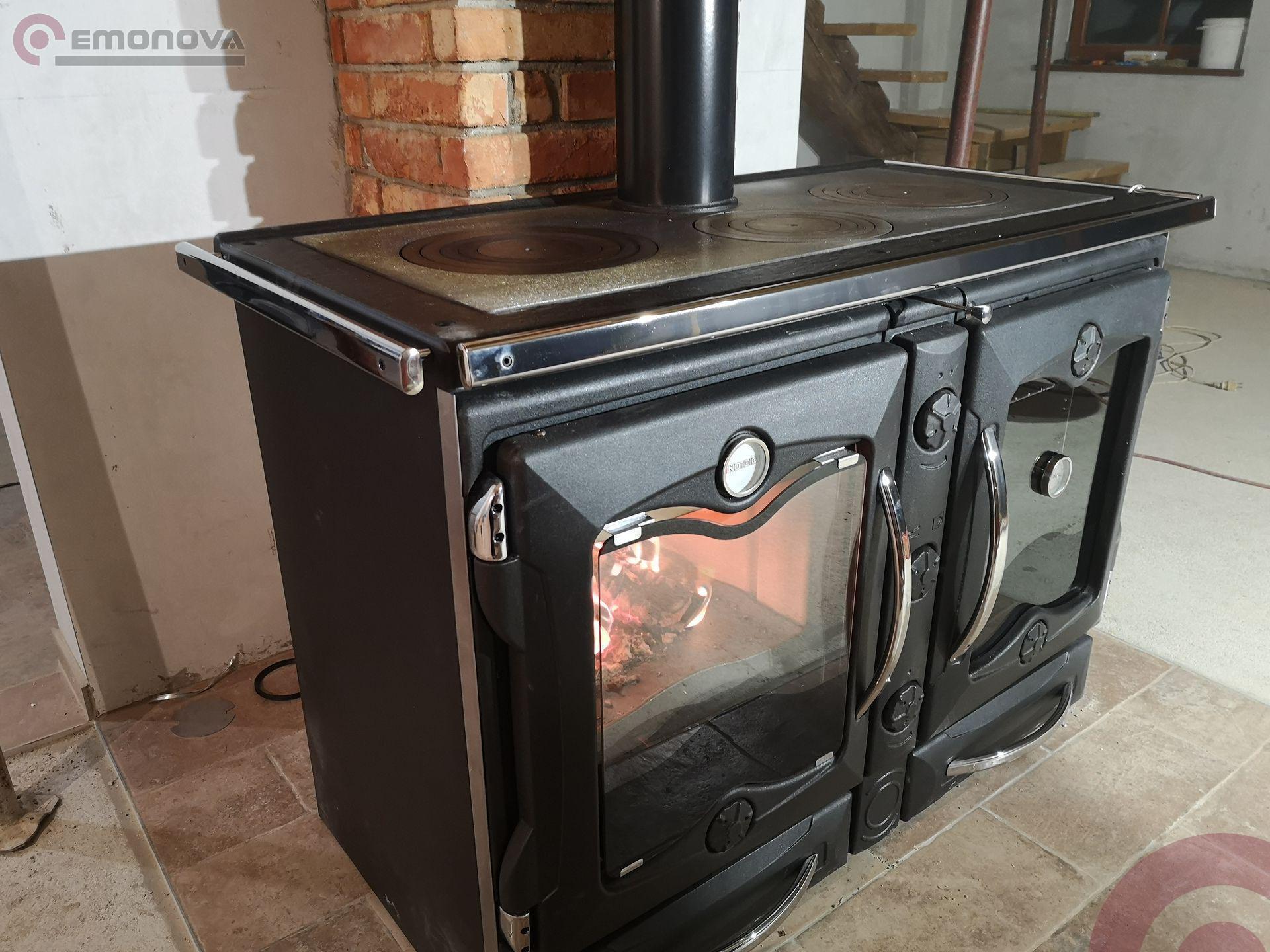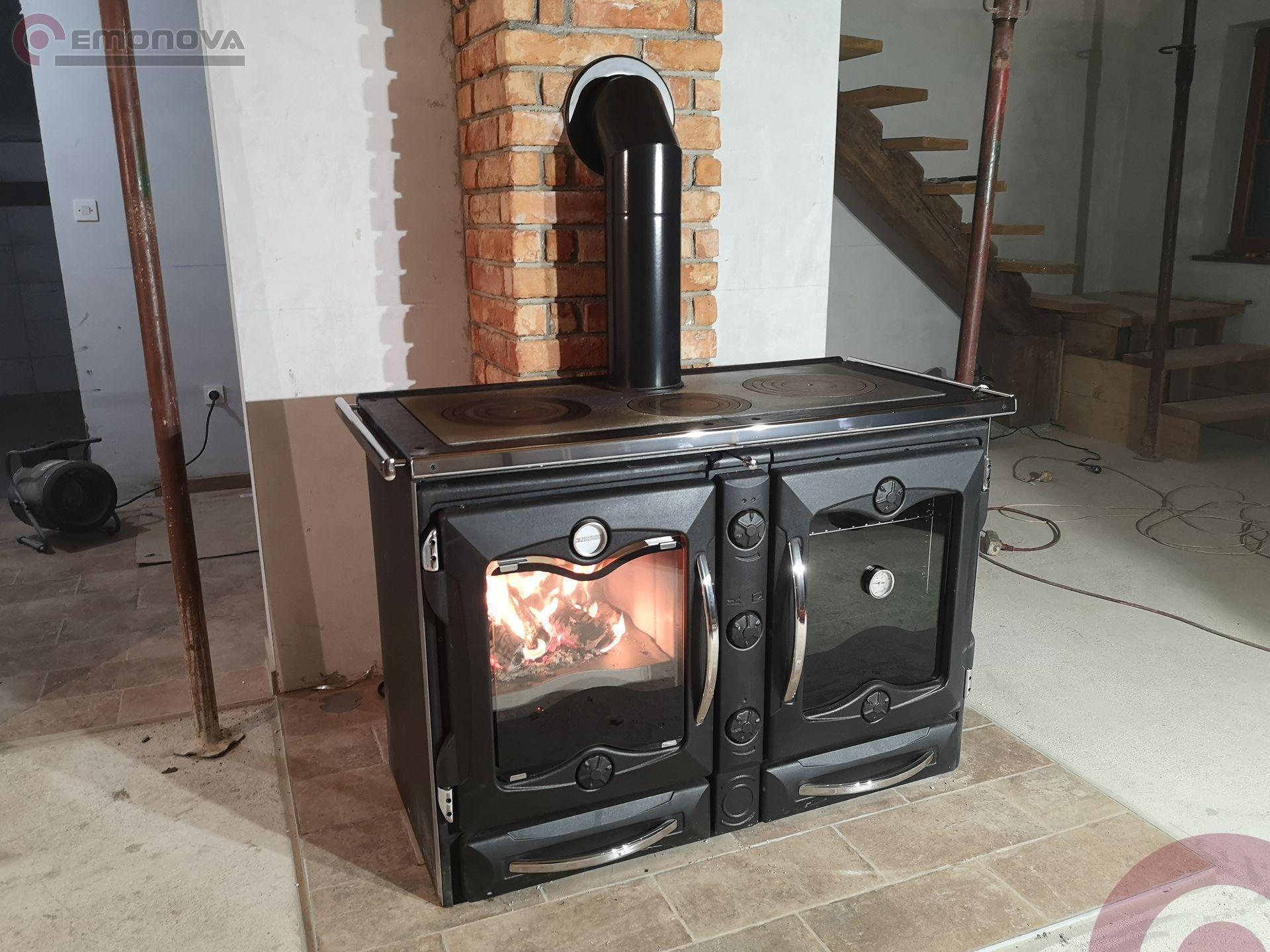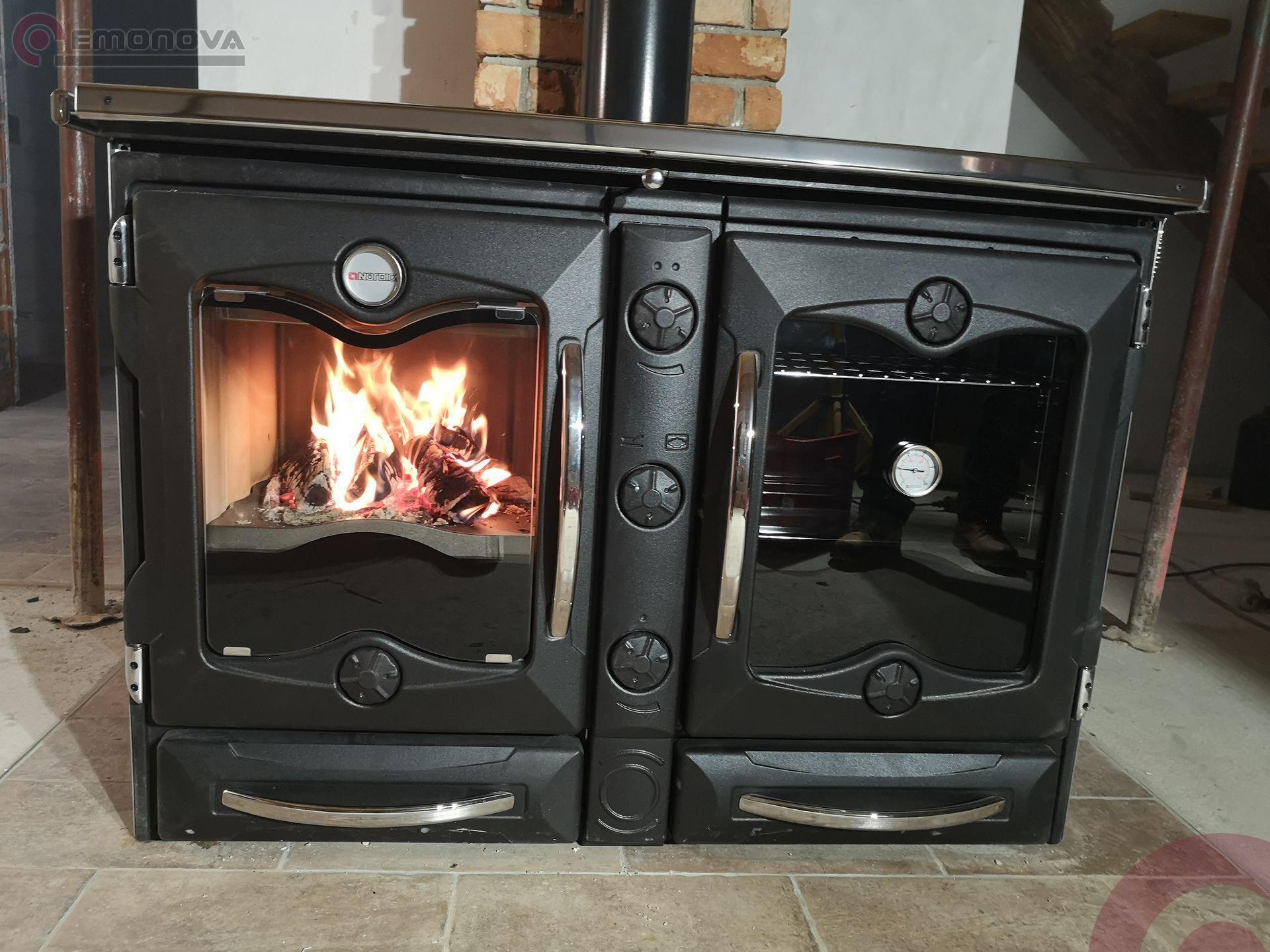 America je veliko večja od običajnega domačega plinskega ali električnega štedilnika, prostor pa je pametno razdeljen za ogrevanje in peko s panoramskim kuriščem in več kot 80 litersko veliko pečico za peko.