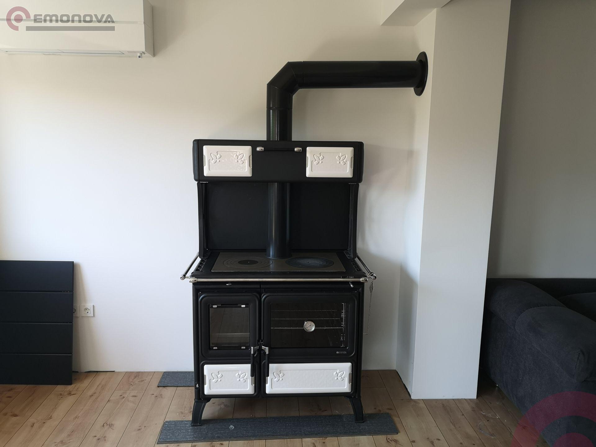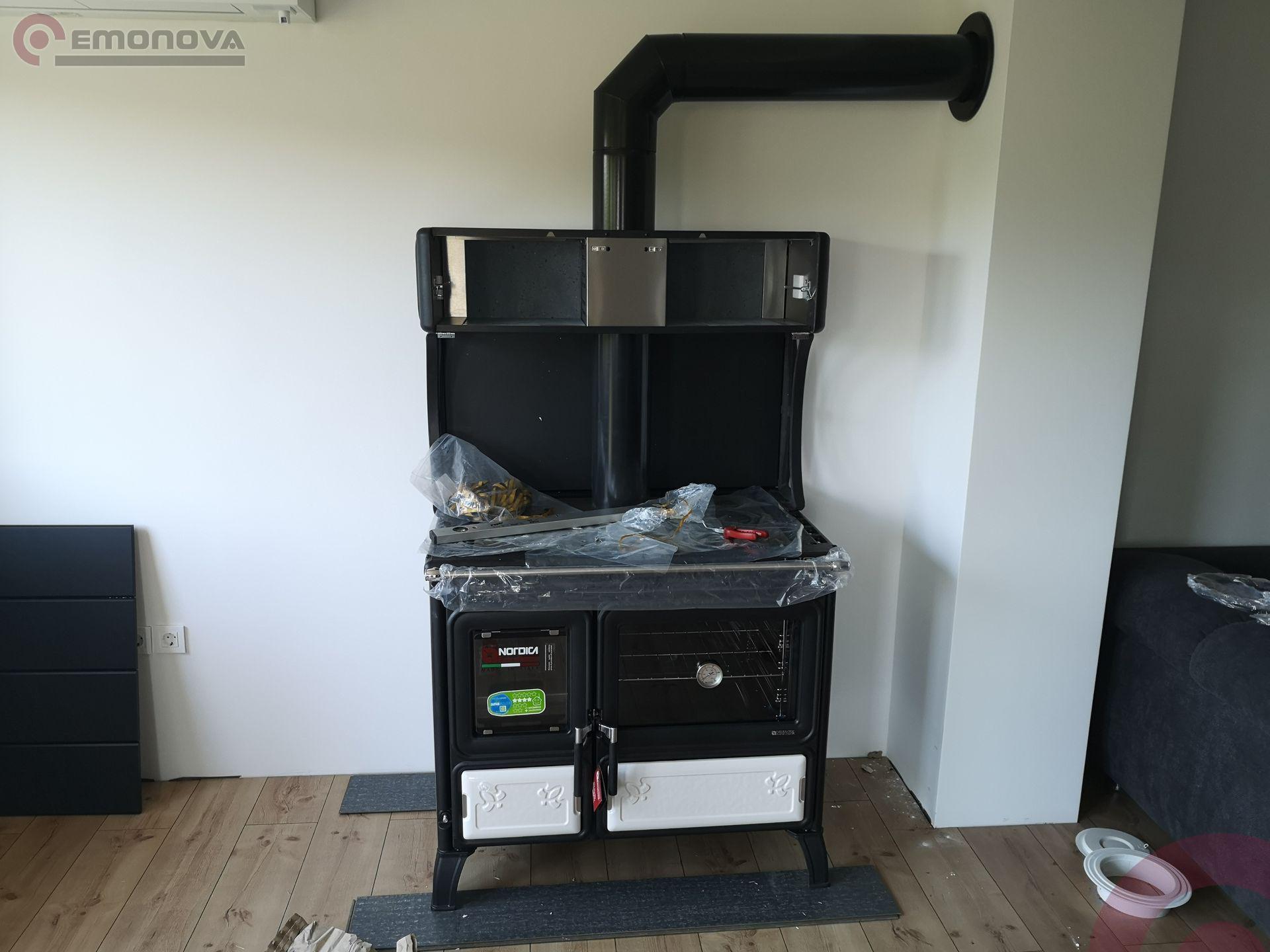 V novi hiši, obkoljeni s čudovito naravo, je štedilnik na drva La Nordica Milly dobil posebej namenjen prostor, kjer bo predvsem med prostimi dnevni gospodarja poskrbel za peko in ogrevanje vseh dnevnih prostorov. Če bo kdo zamudil kosilo, ga bo tako ali drugače počakalo še vedno toplo v predalu za segrevanje.