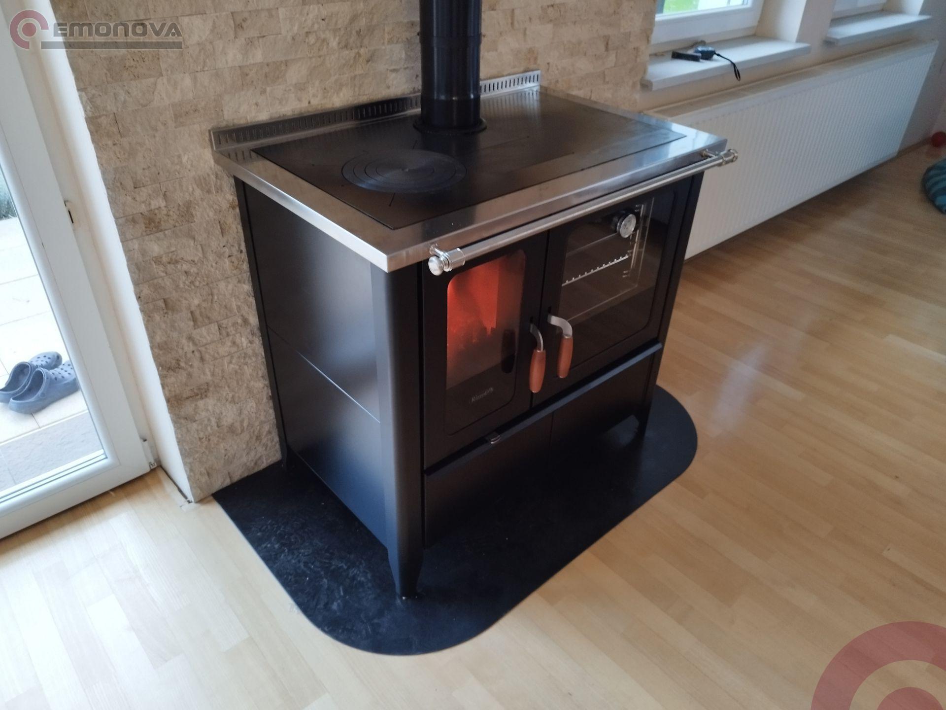 Ročaji vrat kurišča in pečice so izdelani iz orehovega lesa, ki zagotavljajo varen oprijem in istočasno dodajajo rustikalni prestiž.