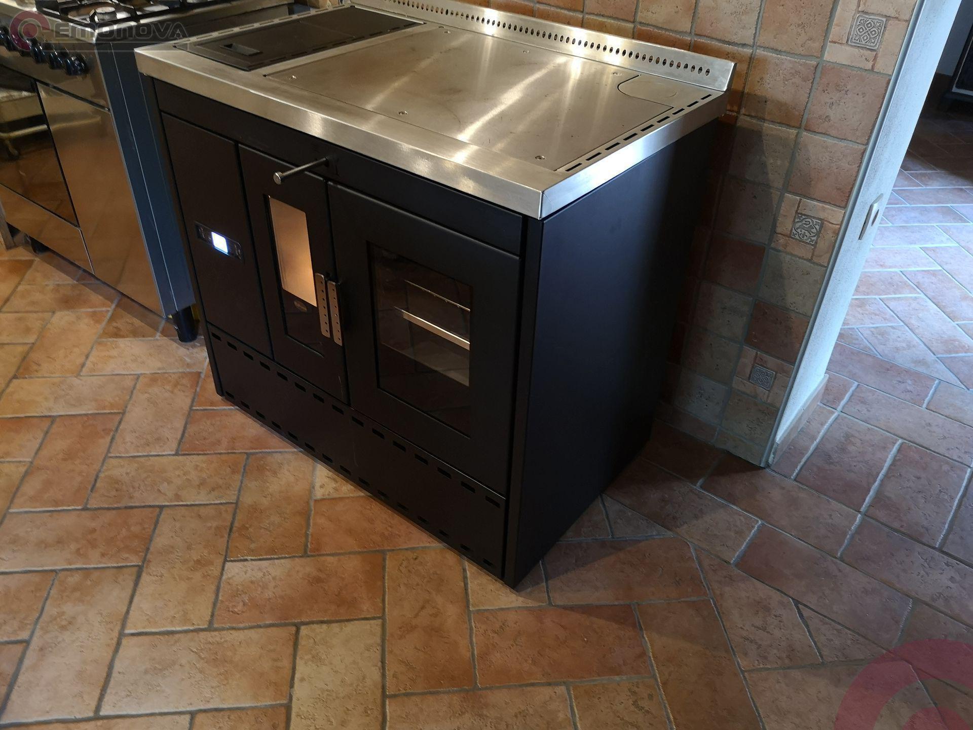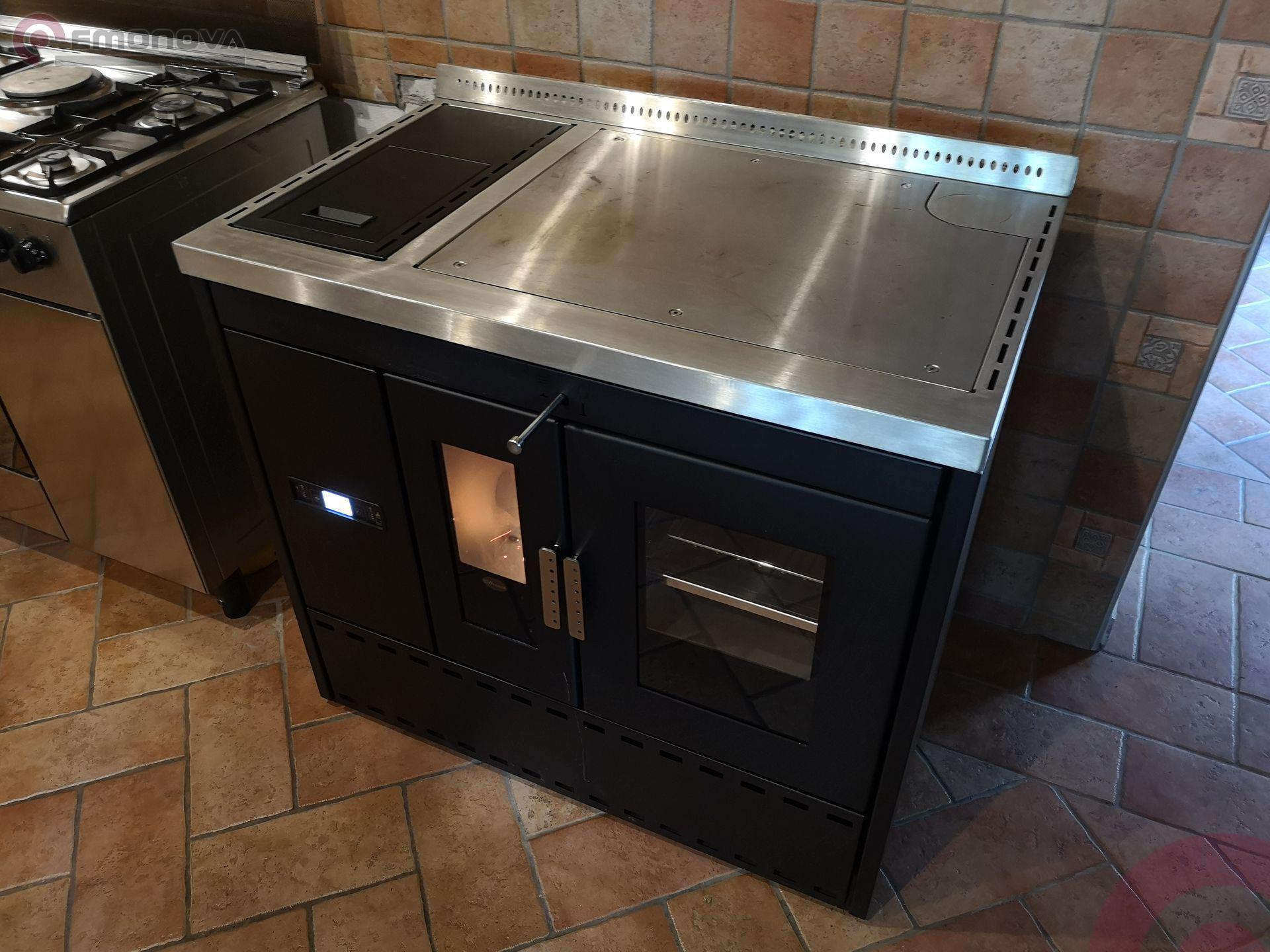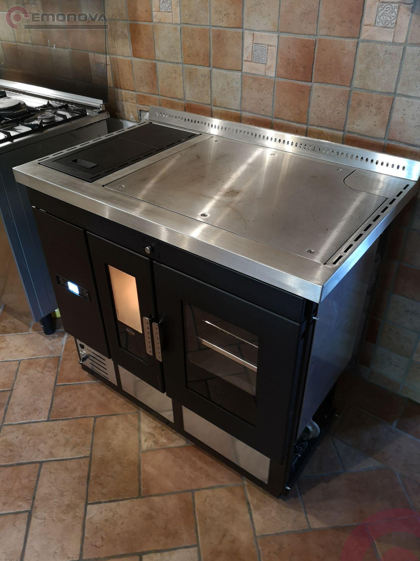Etažni štedilnik na pelete Eva Calor Isotta je opremljena s pečico iz nerjavnega jekla z odstranljivimi rešetkami, aluminijastim pekačem in rešetko za peko, termometrom za pečica.