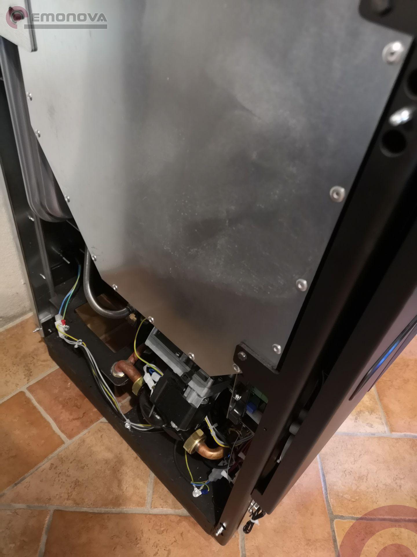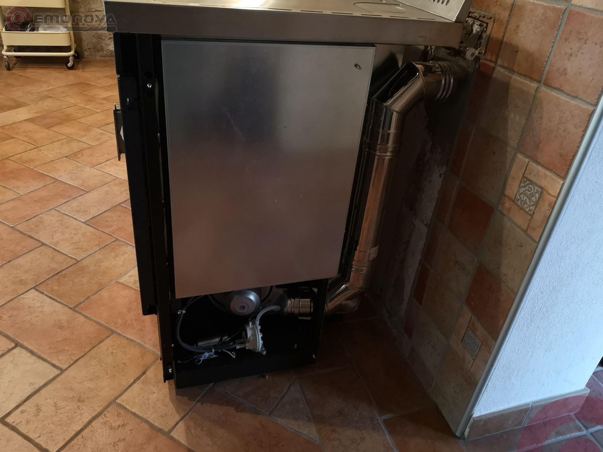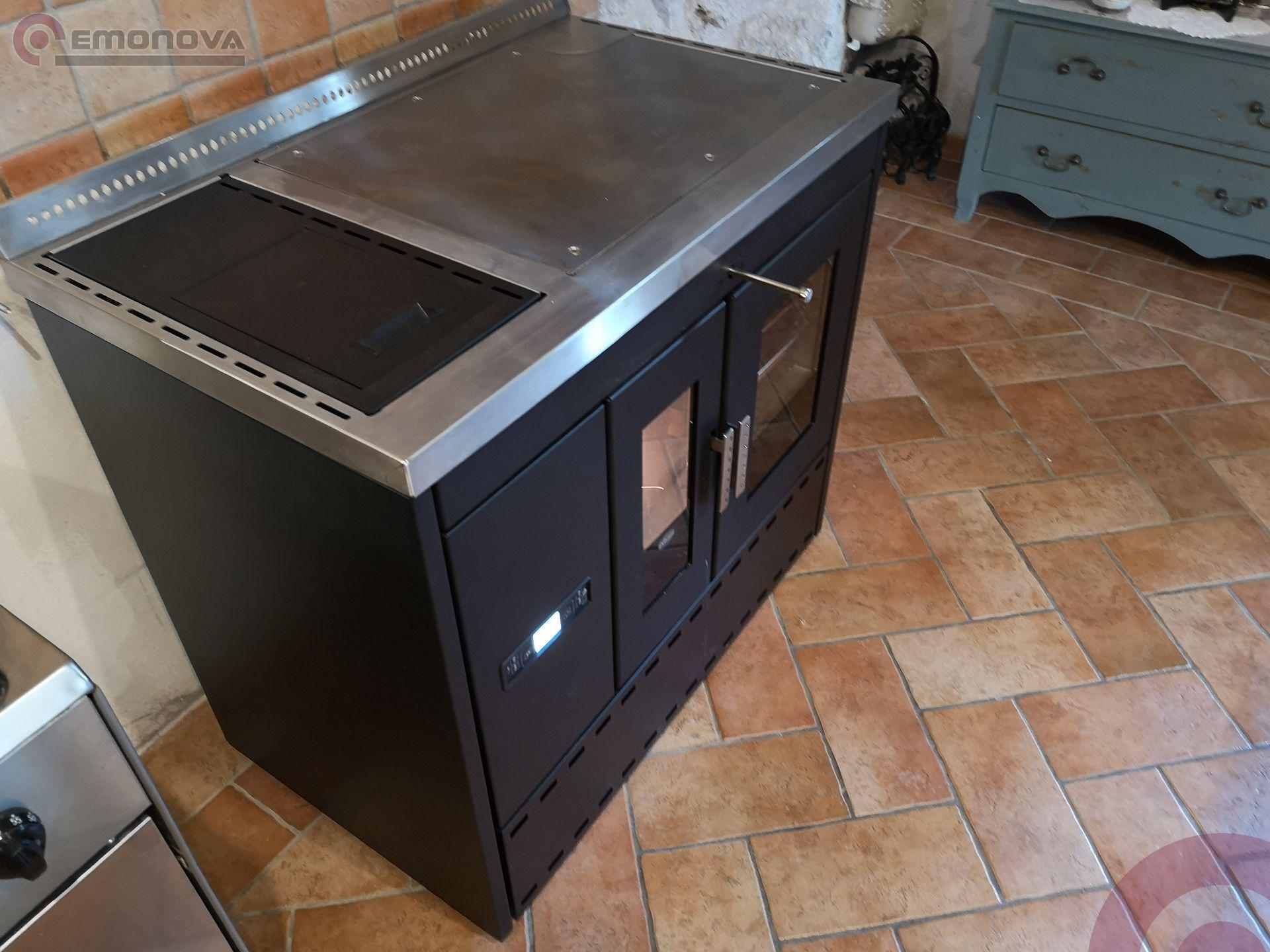 Možnost namestitve odvoda dima na zadnji ali zgornji del. Termo štedilnik na pelete je opremljen s termometrom, tlačnim stikalom in varnostnim ventilom, obtočno črpalko, ekspanzijsko posodo, daljinskim upravljalnikom, 5 močmi delovanja, zaslonom s šestjezičnim menijem in možnostjo namestitve modula Wi-Fi za daljinsko upravljanje.