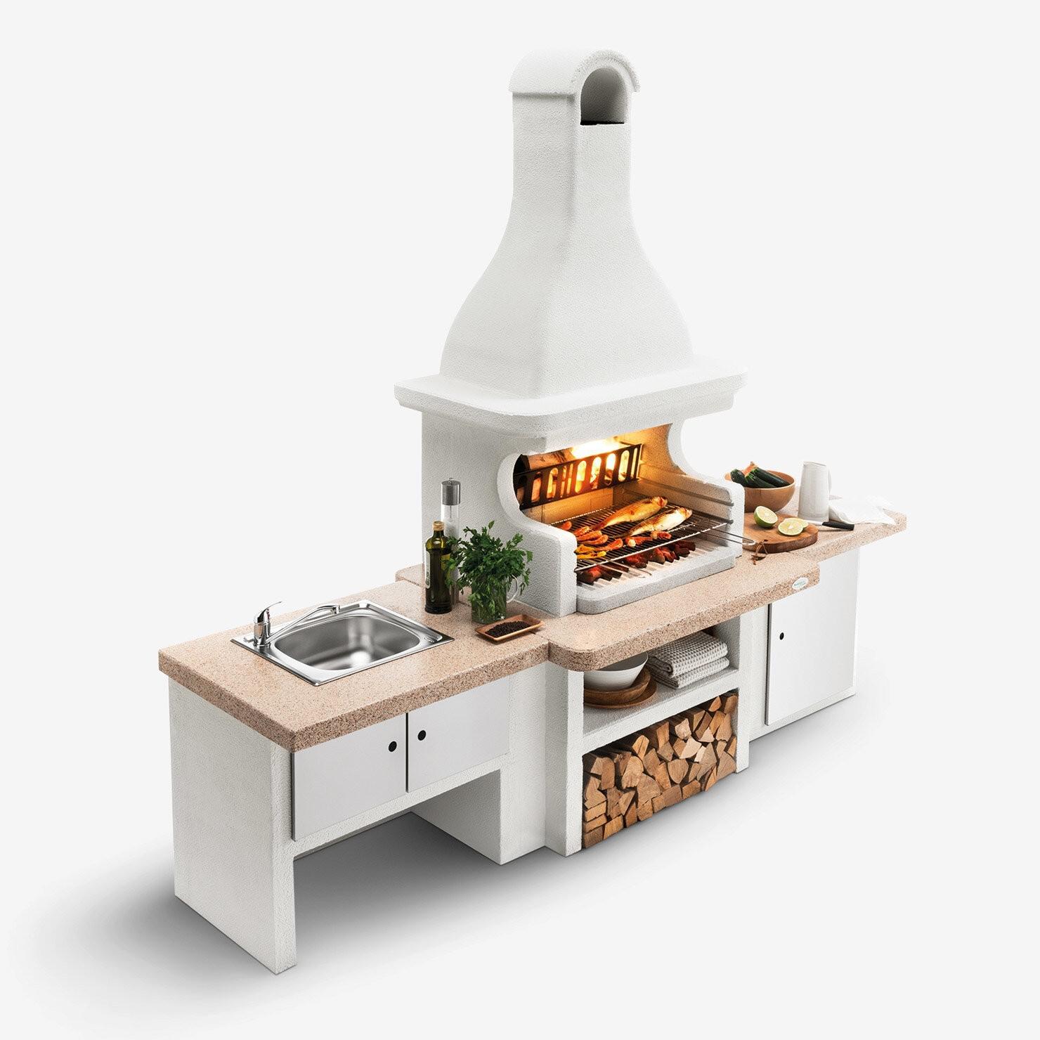 Za večje udobje ima Andros 3 prostorno delovno in odlagalno površino iz Marmotecha, posebnega kompozitnega materiala na osnovi marmorja z odlično toplotno odpornostjo. Delovna površina je na voljo v poliranem rdečem ali sivem granitu in združuje funkcionalnost z elegantnim videzom. Za učinkovito prezračevanje dima skrbi velika odsesovalna napa, podprta s kovinskim podnožjem za dodatno toplotno zaščito. Žaru je priložena tudi trpežna košara za kurjenje s poleni.