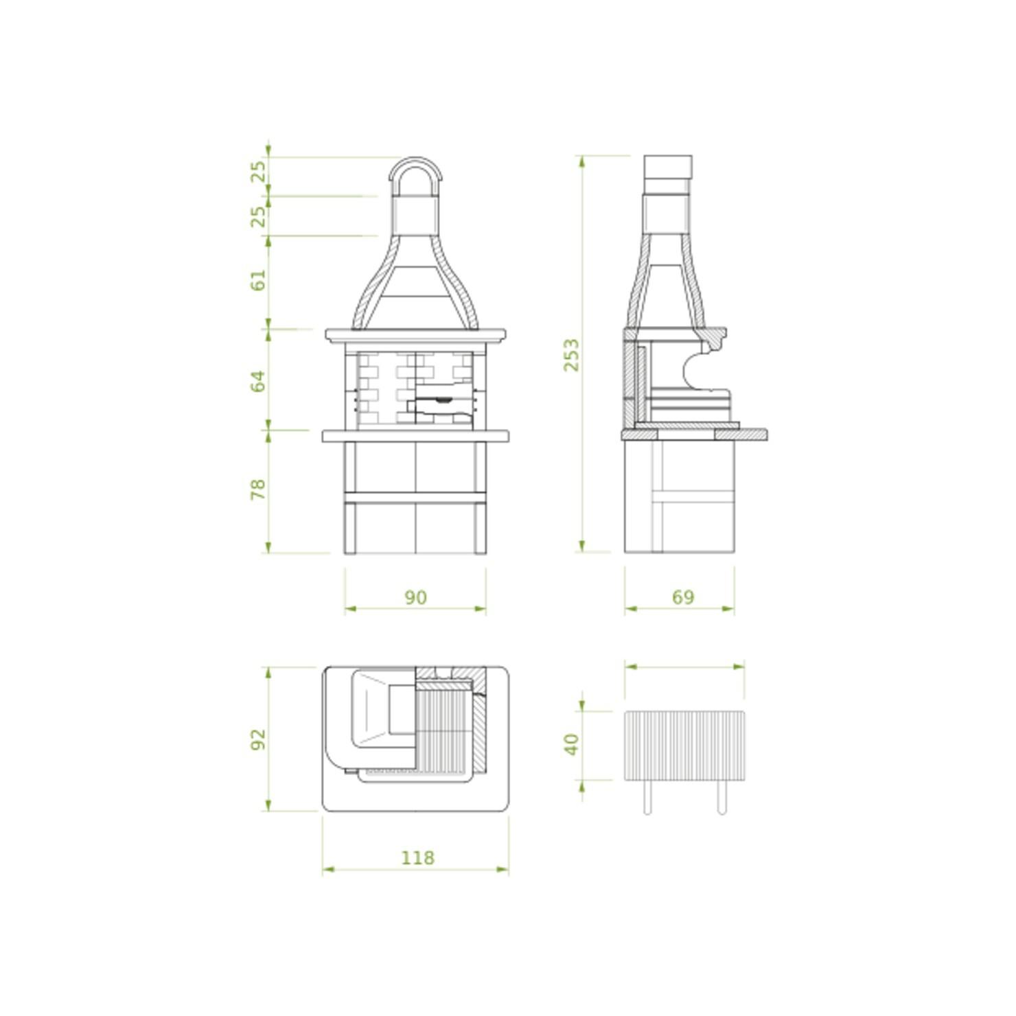 Priložena jeklena kromirana rešetka za žar velikosti 76x40 cm je nastavljiva po višini in omogoča uravnavanje razdalje med hrano in ognjem za optimalne rezultate priprave. Za peko na žaru lahko uporabljate drva ali tradicionalno oglje. Pod prostorom za žar sta dva predala za shranjevanje, v katerih lahko shranite pripomočke za peko na žaru, pripomočke ali posodo.