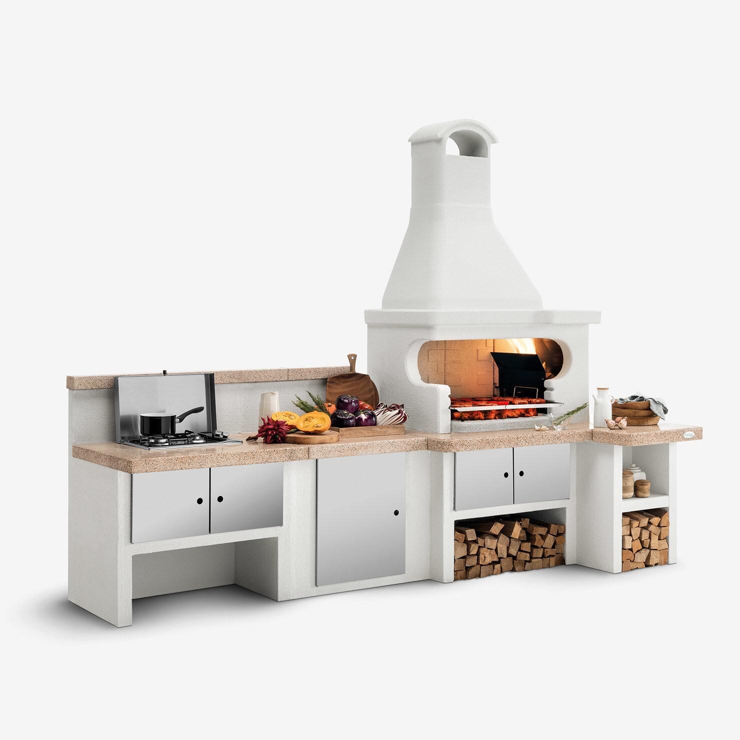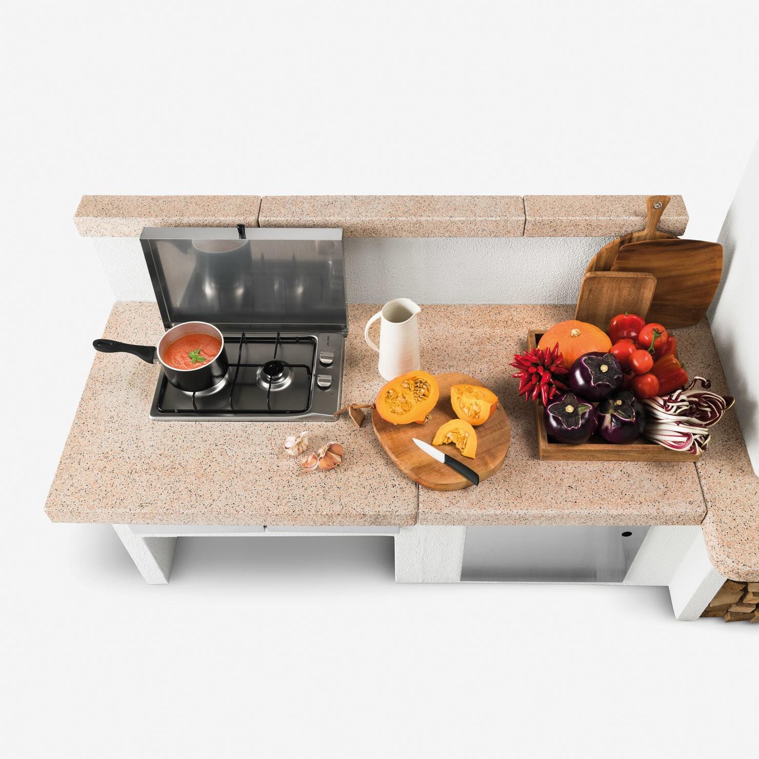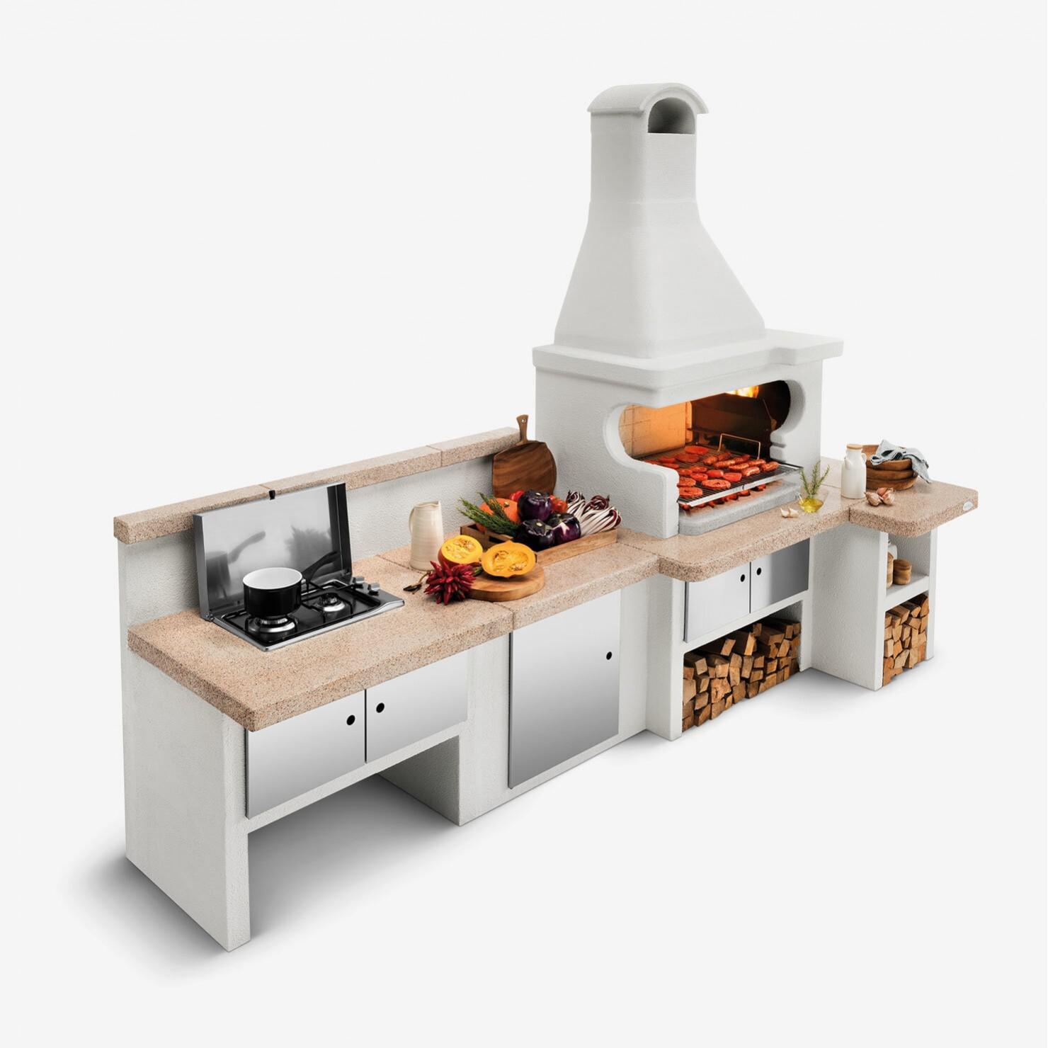 Palazzetti Tropea 4 ima strukturo, ki je odporna na vremenske vplive in zagotavlja dolgo življenjsko dobo. Njegova delovna površina je izdelana iz Marmortecha z granitno površino in polirano teksturo - inovativnega materiala, ki združuje marmorne agregate za izjemno toplotno odpornost. Dim se učinkovito odvaja skozi dimnik, ki ga je mogoče razširiti z dodatnimi komponentami. Standardna različica je na voljo v nedokončani izvedbi, kar omogoča popolno prilagoditev barve.