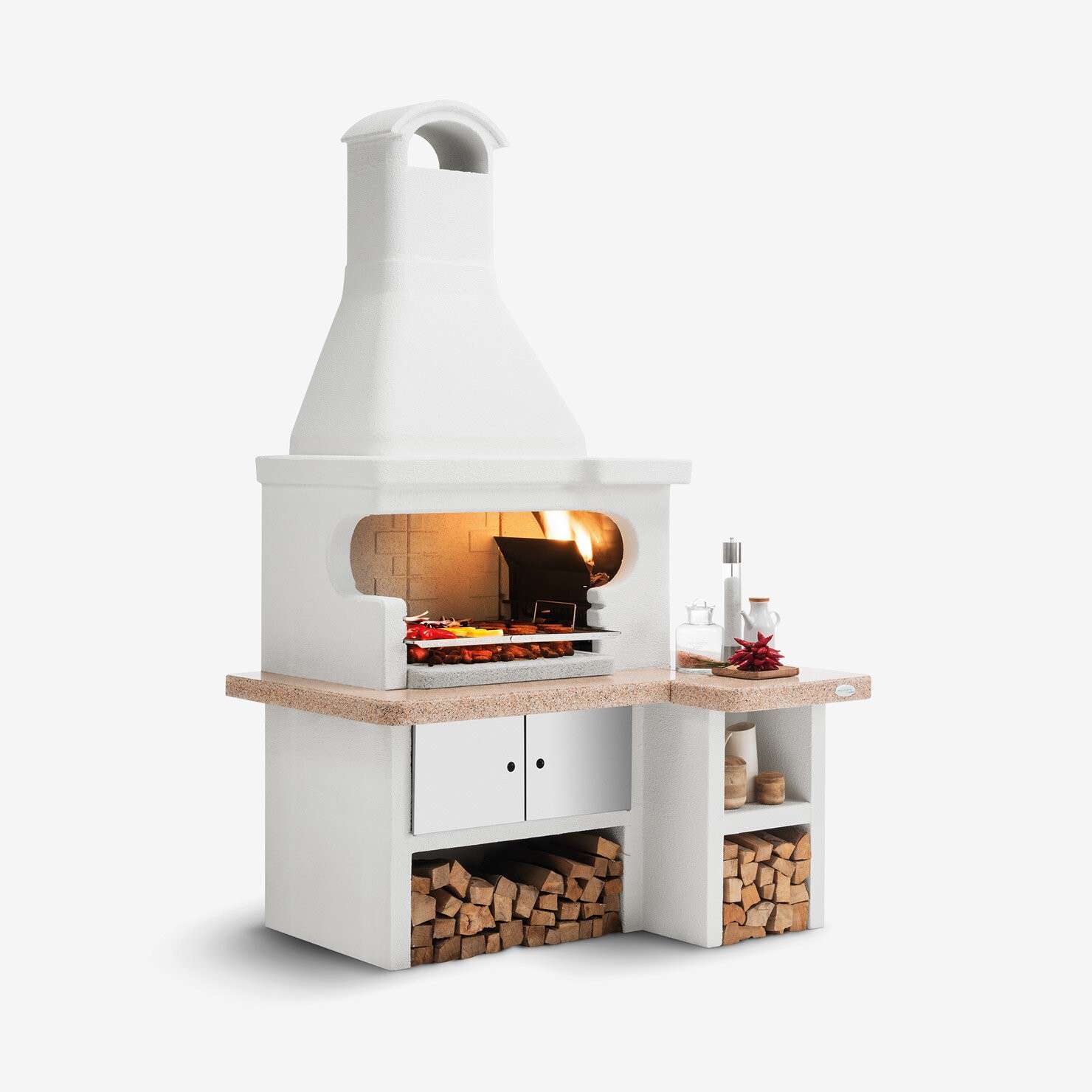 Kompaktnost, ergonomija, praktičnost in izjemno velik žar - vse v enem modelu: vrtni kamin Tropea. Ognjišče s stranskim podstavkom omogoča lažje pečenje in nalaganje drv ter popolno izkoriščenost površine žara. Velik žar omogoča pripravo velikih kosov mesa in rib.