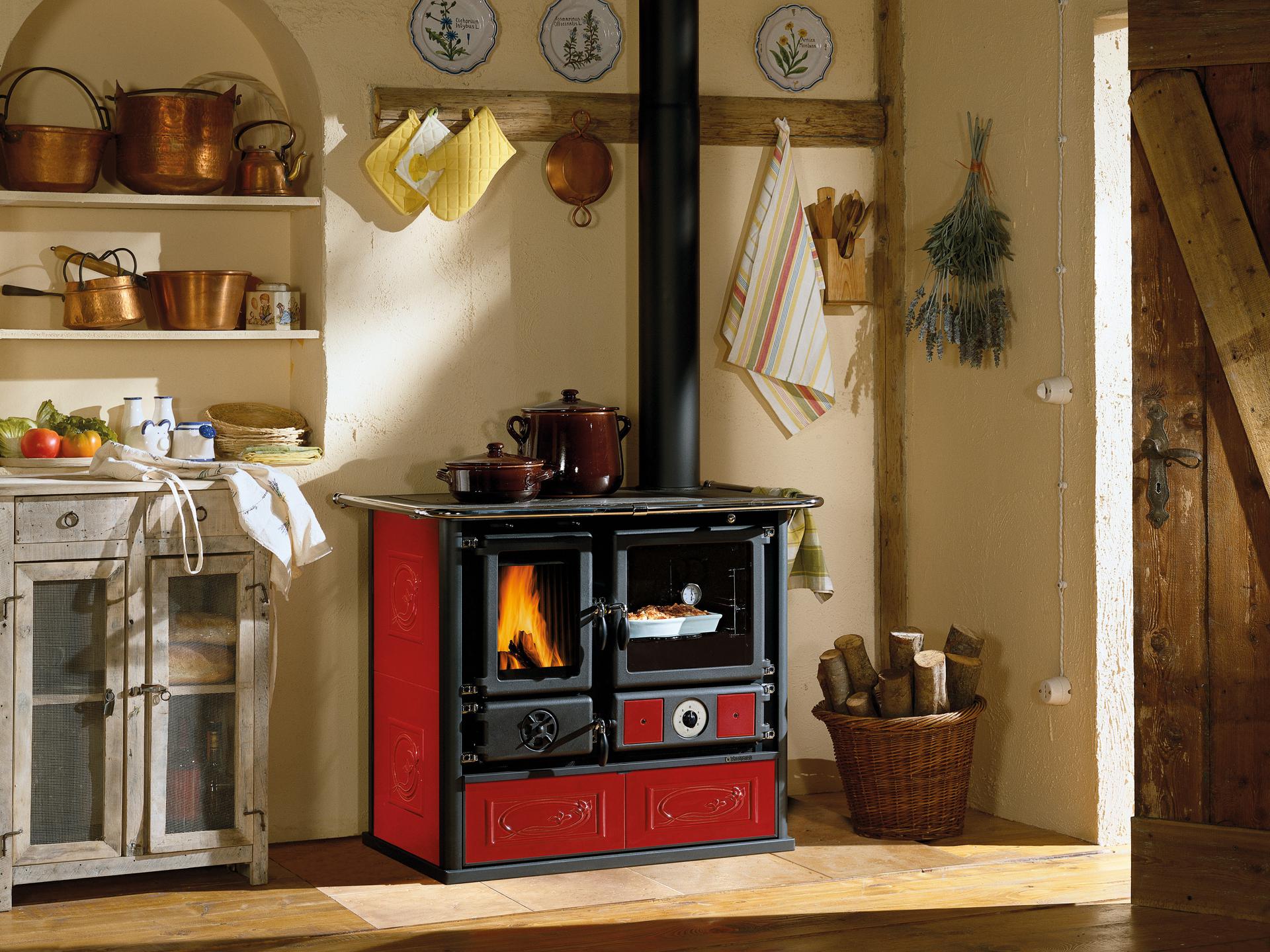 Štedilnik na drva, ki se priključi na ogrevalni in vodovodni sistem ter učinkovito in ekološko ogreva celotno hišo z odlično toplotno močjo, nizko porabo goriva in popolnim spoštovanjem okolja. Poraba polen in popolnim spoštovanjem okolja. Opremljen je z veliko pečico in litoželezno kuhalno ploščo z obroči.