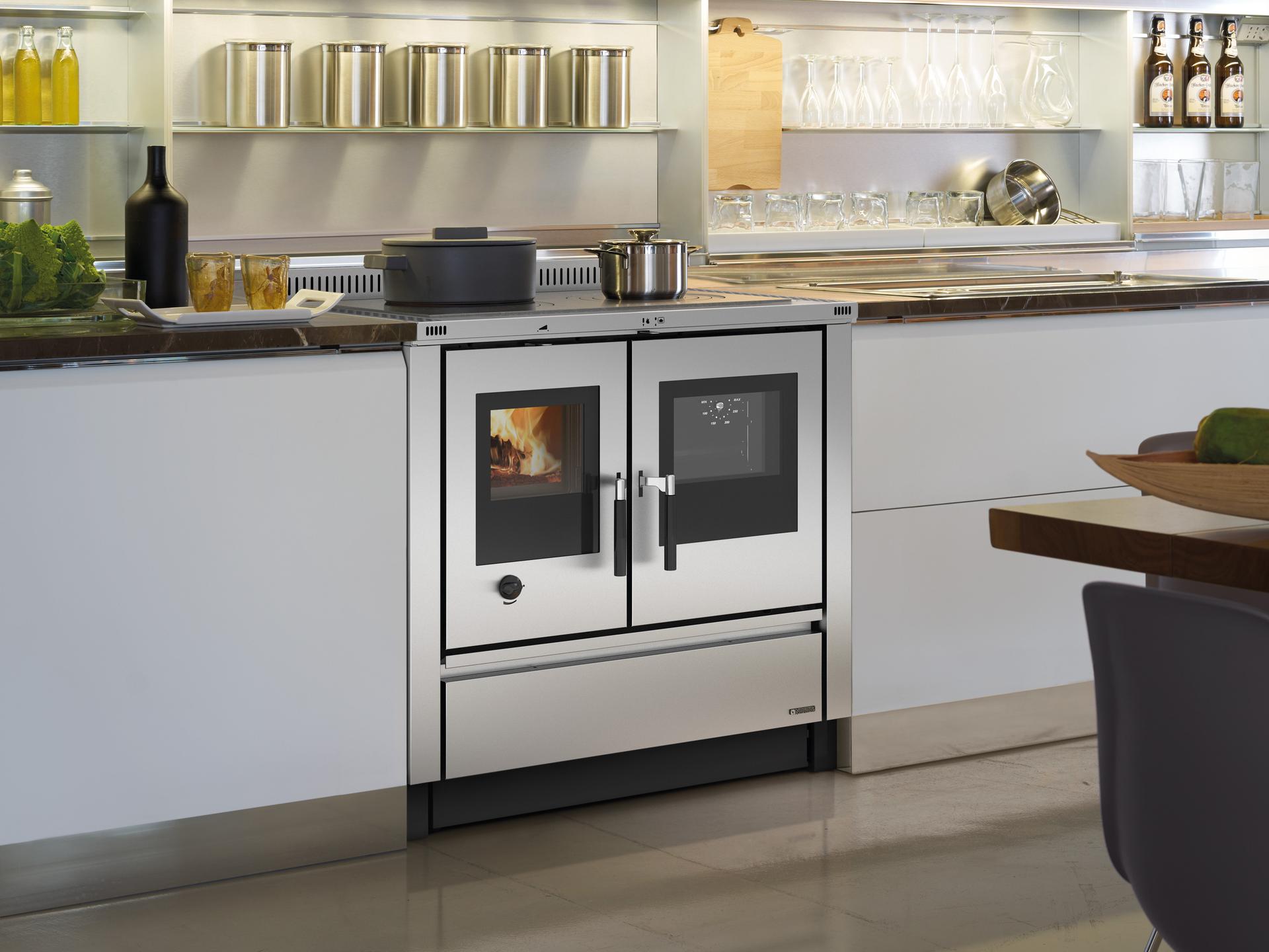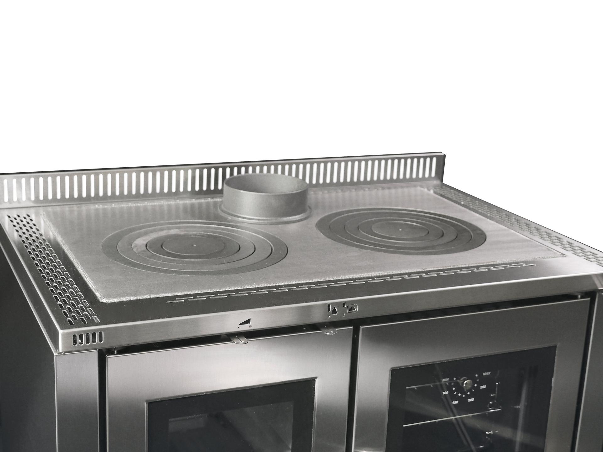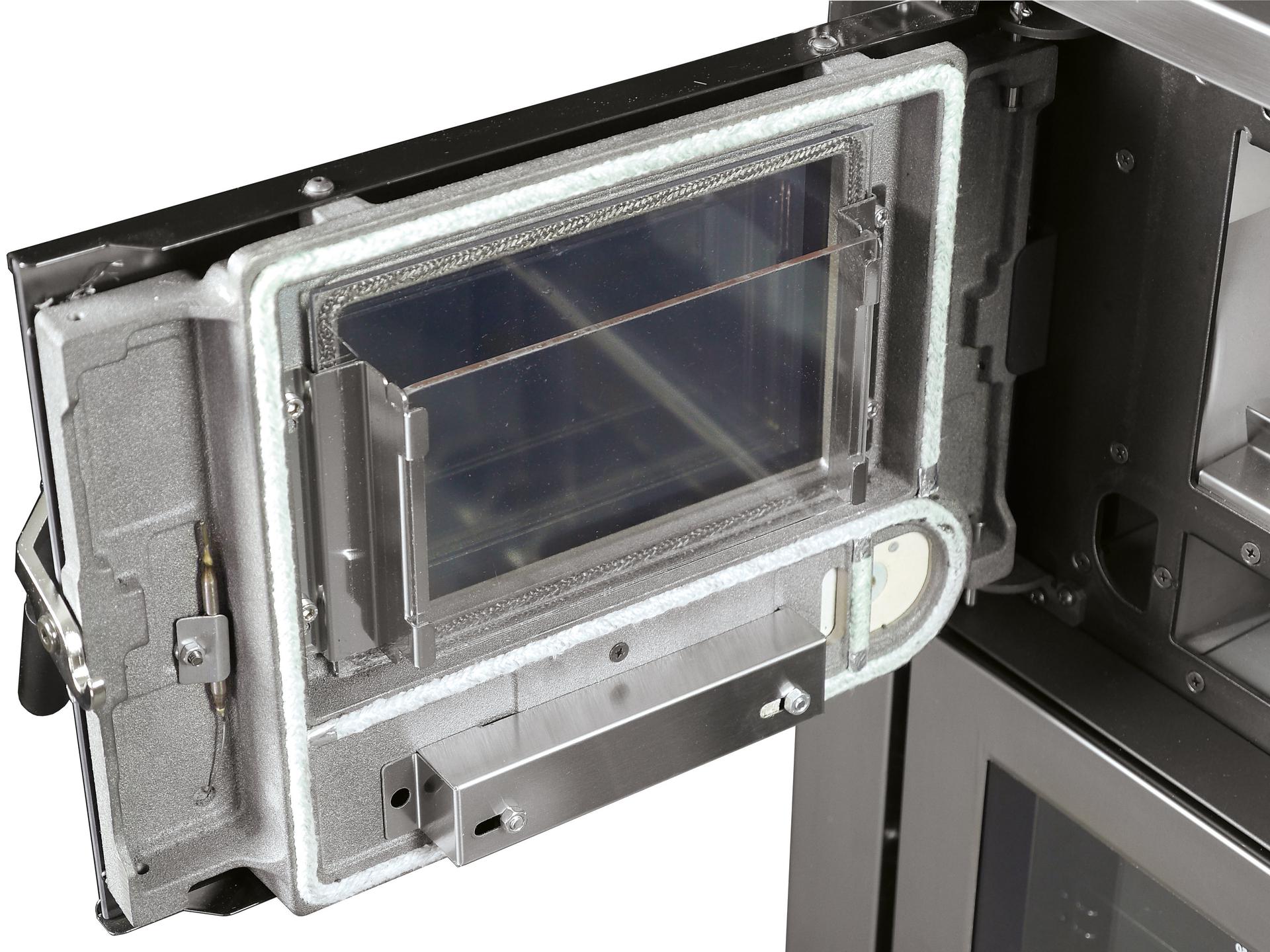 Vgradni ali samostoječi štedilnik na drva s steklom in brušenim ali emajliranim nerjavečim jeklom. Prevleka in okvir iz litega železa. Notranja obloga kurišča iz litega železa in Nordikerja. Vrata kurišča iz litega železa z dvojnim steklom. Samodejna nastavitev primarnega zraka.