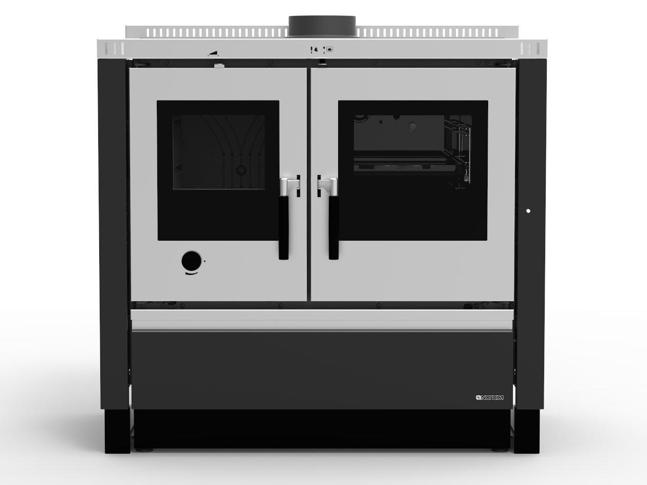 Vgradni ali samostoječi štedilnik na drva s steklom in brušenim ali emajliranim nerjavečim jeklom. Prevleka in okvir iz litega železa. Notranja obloga kurišča iz litega železa in Nordikerja. Vrata kurišča iz litega železa z dvojnim steklom. Samodejna nastavitev primarnega zraka.