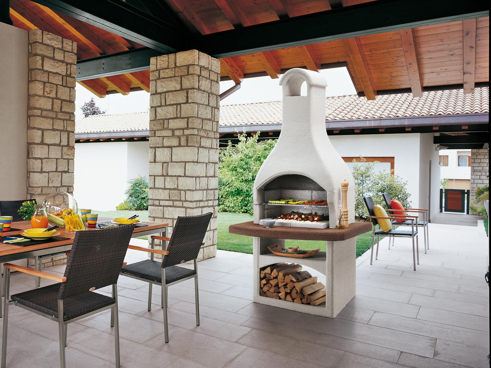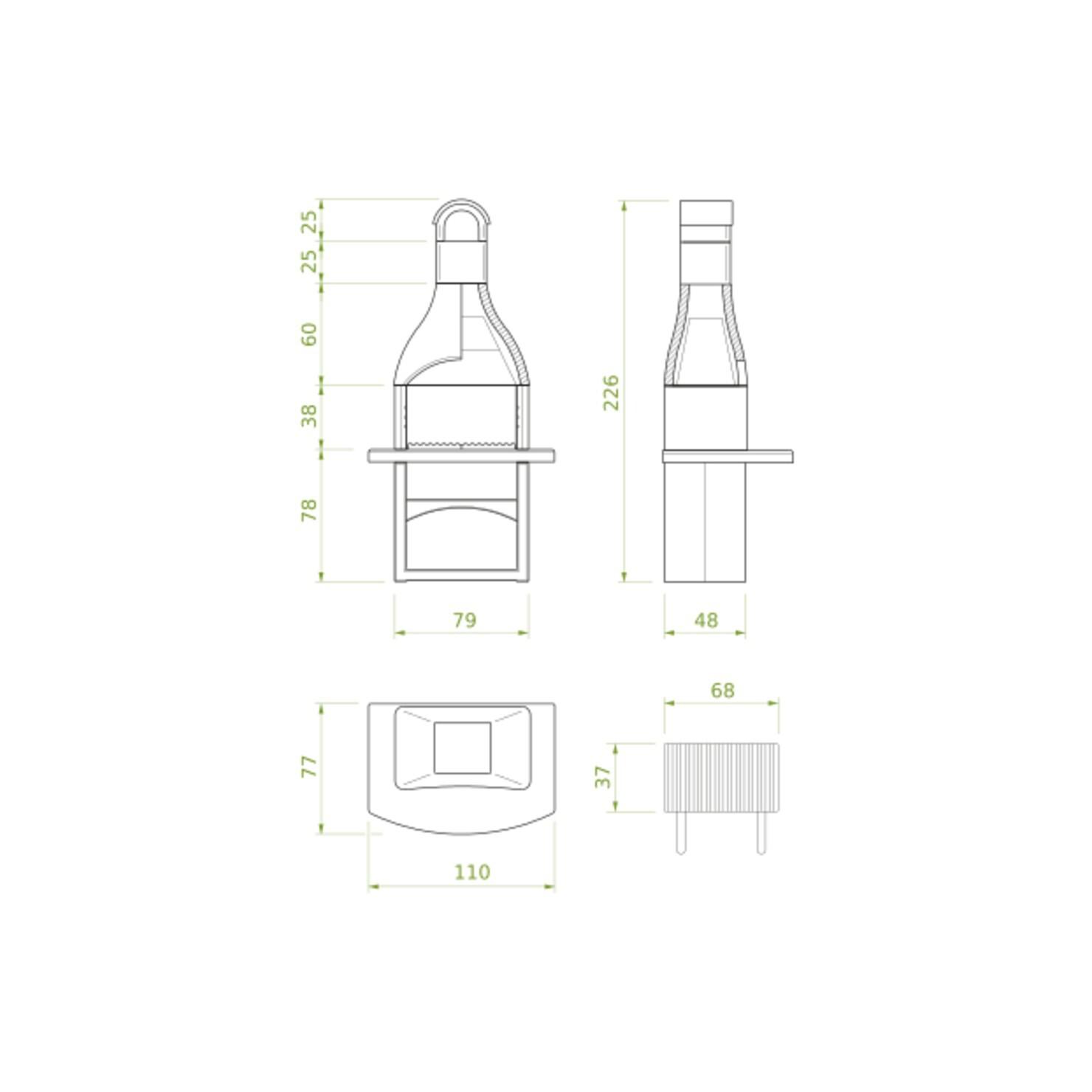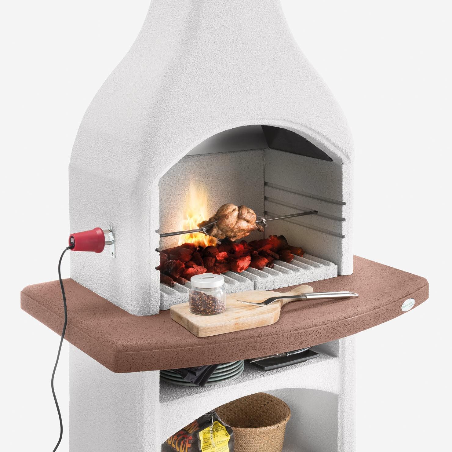 Klasično oblikovan mali vrtni kamin na oglje, ki ga lahko postavite tudi na teraso ali pod verando. Pult je pobarvan v masi, zato ga ni treba barvati.