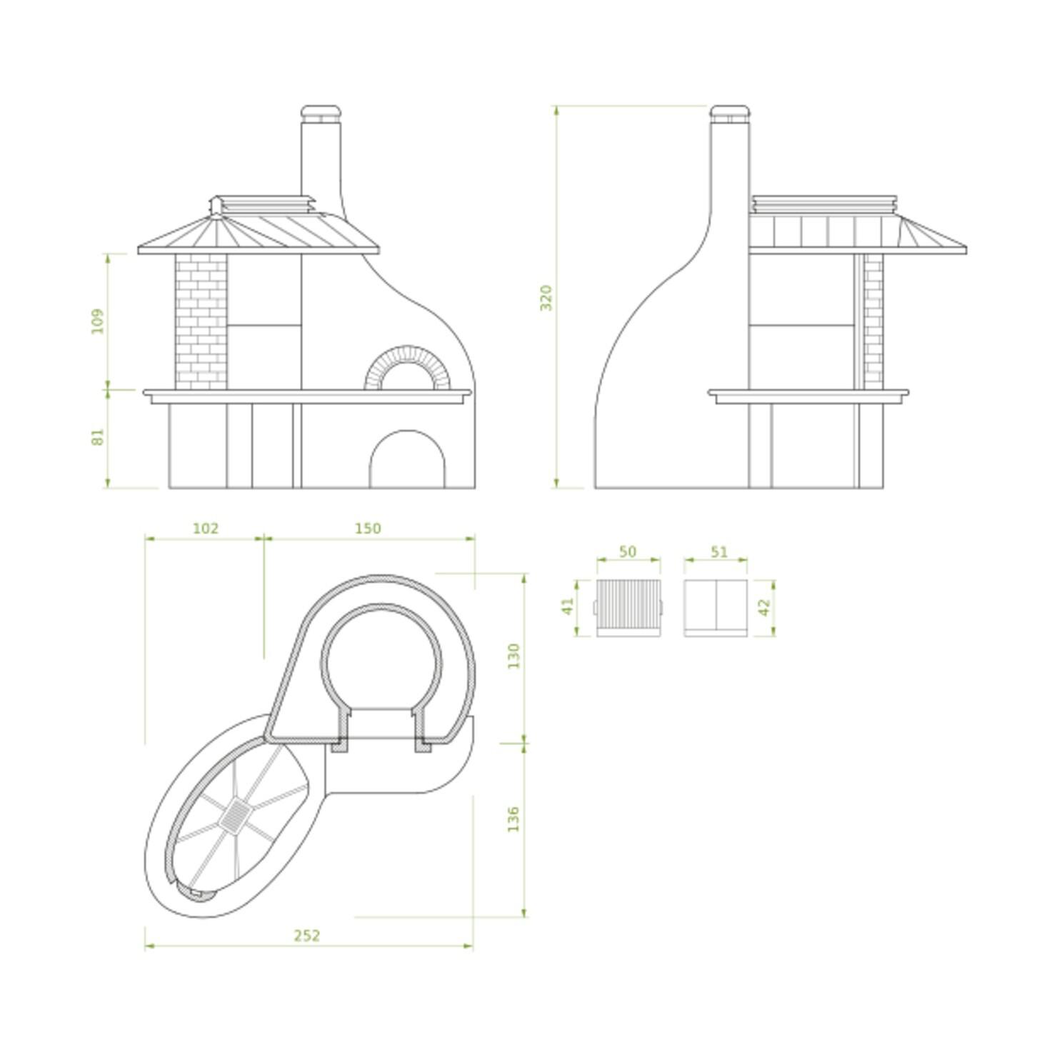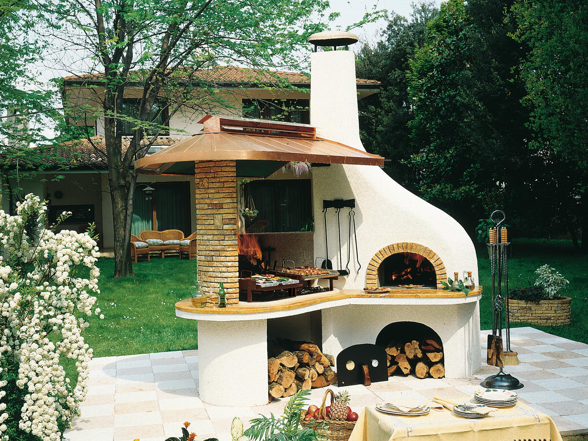 Vulcano Lux se ponaša z značilnim videzom hišice, saj bakrena streha zakriva žar in del delovne površine. Pod marmornato delovno površino so prostorni predali za priročno shranjevanje lesa. Sam vrtni kamin ponuja obsežne dvojne cone za peko, za večjo vsestranskost pa je na voljo dodatna oprema, kot sta plošča iz mavčnega kamna ali raženj.