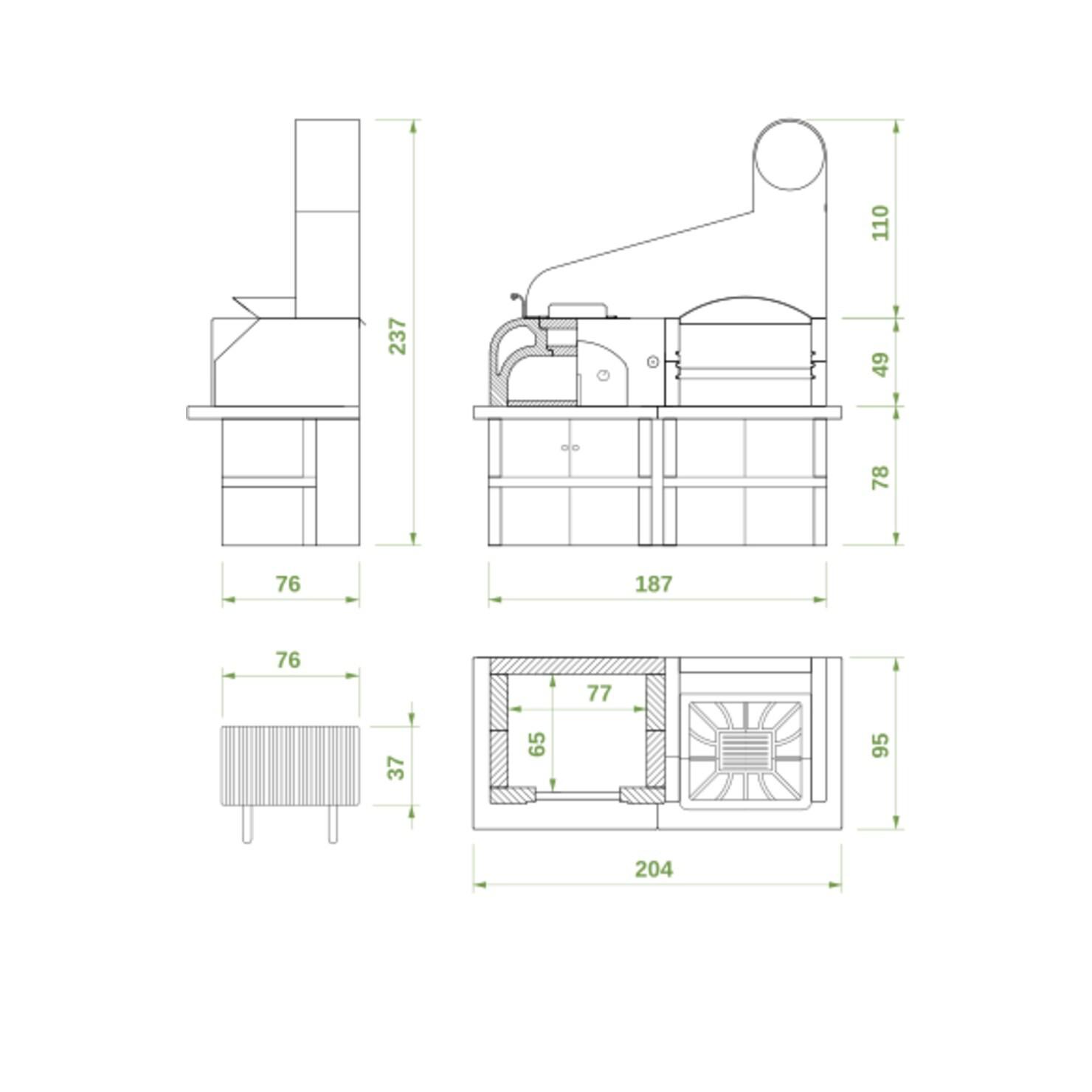 Posebnost kamina Maxime 2 je možnost dvojnega nalaganja - drva lahko dodajate spredaj in zadaj. Možnost nalaganja od zadaj omogoča večjo zmogljivost goriva, zaradi česar je peka na žaru daljša in priročnejša. Vrtni kamin je združljiv z drvmi in ogljem, prostoren vgrajen predal za shranjevanje pod kuriščem pa poskrbi, da je gorivo lepo urejeno.