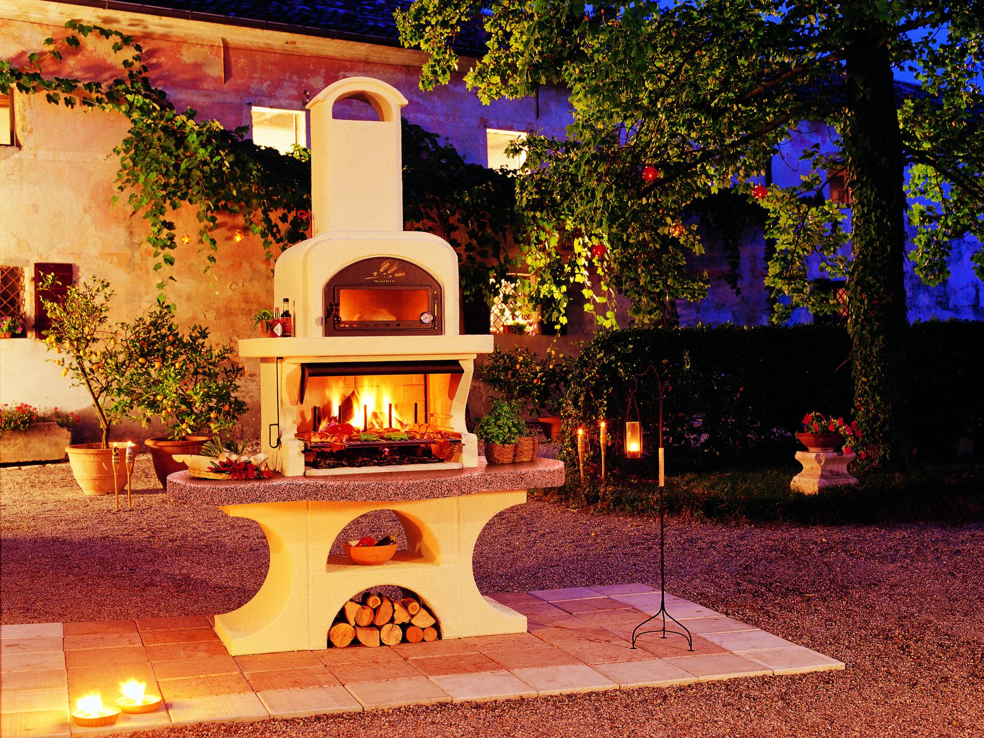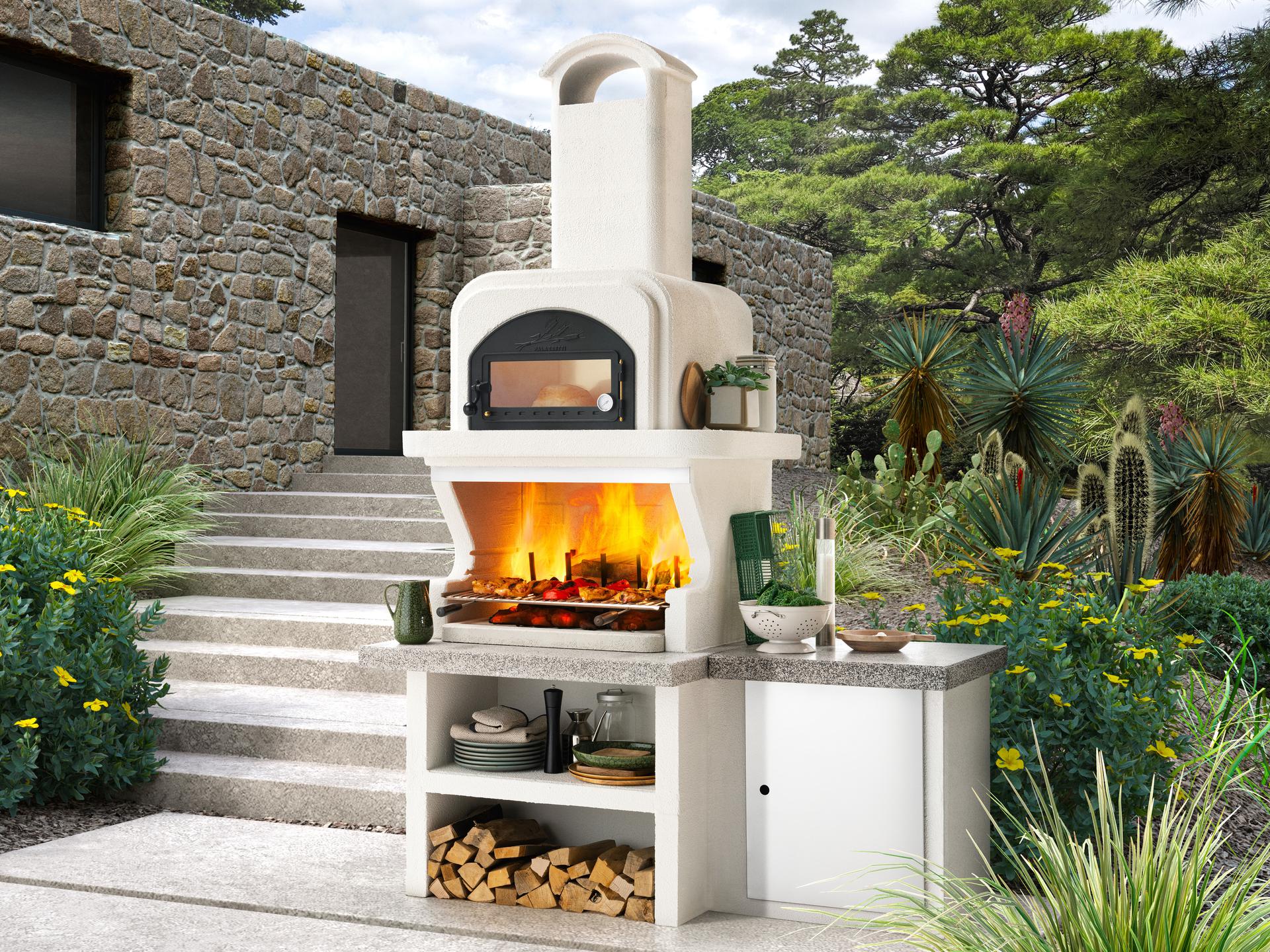 Inovativni vrtni kamin s patentirano zunanjo pečjo je namenjen profesionalcem v peki na žaru. Pečica iz nerjavnega jekla hitro doseže želeno temperaturo z uporabo toplote iz ognja žara, kar vam omogoča hkratno peko na žaru in v pečici z enim samim ognjem. To zagotavlja največje udobje in manjšo porabo lesa.