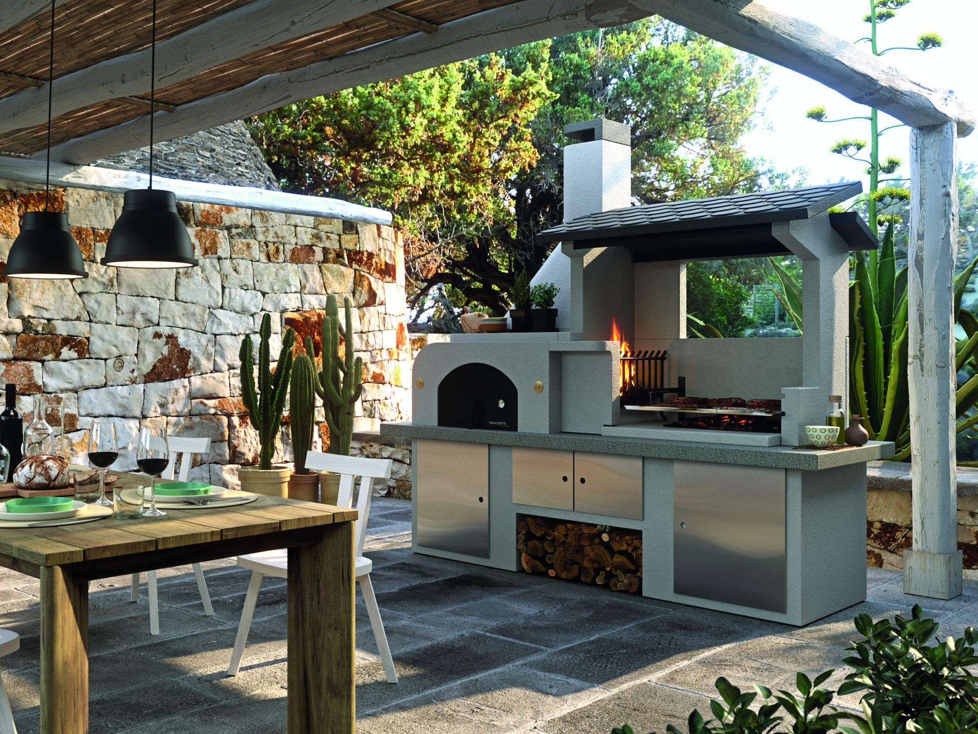 Vrtni kamin Palazzetti Antille je prava atrakcija za vsak vrt, saj ponuja veliko površino za peko na žaru in vgrajeno krušno peč. Njegova zasnova ustvarja poletni ambient, zato je že na prvi pogled privlačen kakovosten izdelek. Stransko kurišče omogoča hkratno peko na žaru in pekaču, kar zagotavlja prilagodljivost pri kuhanju na prostem. Ognjišče je enostavno za polnjenje z drvmi in ima vzdržljivo jekleno košaro za ogenj. Krušna peč z dimnikom je nameščena na levi strani, medtem ko je prostoren pokrit prostor za peko na žaru na desni strani. Ta zunanja kuhinja, zasnovana s pozornostjo do podrobnosti, na vašem dvorišču izžareva italijanski šarm.