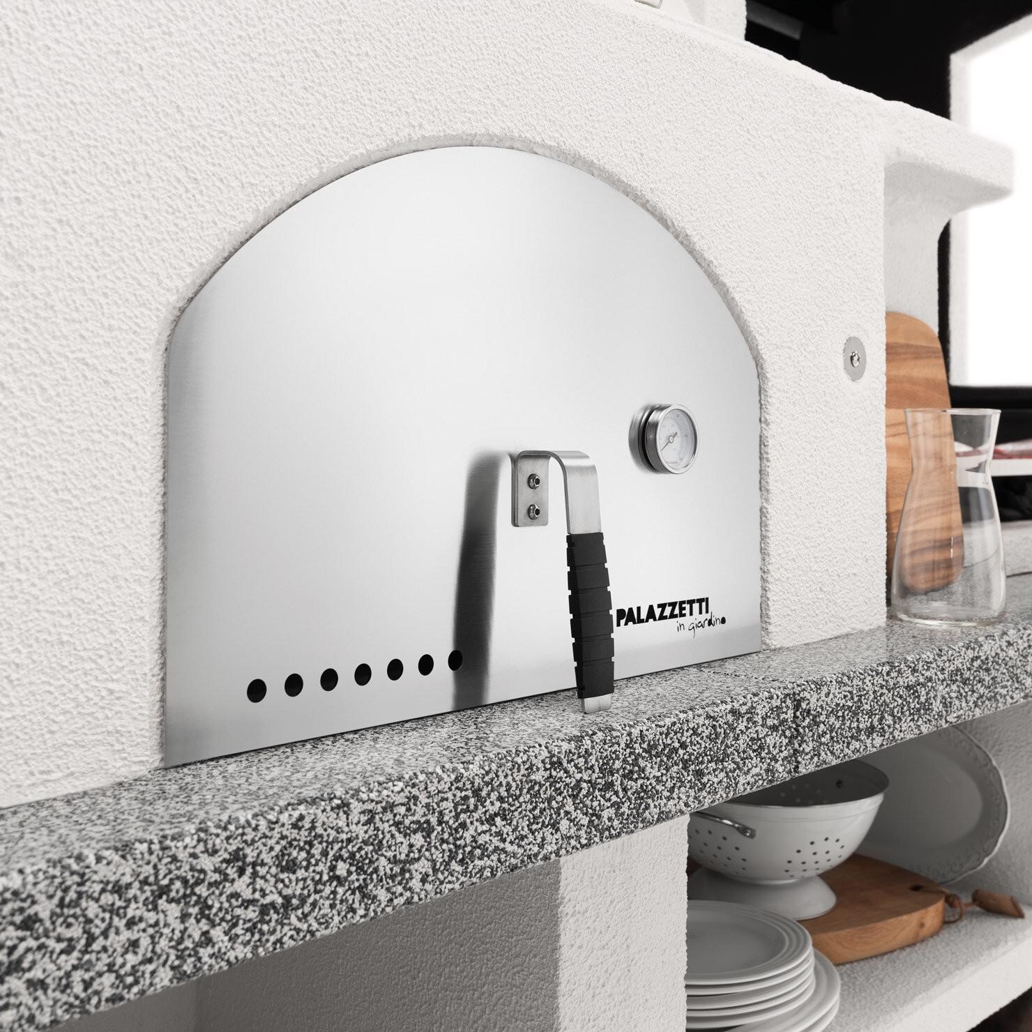 Vrtni kamin Palazzetti Antille je zasnovan za stalno namestitev, kar zagotavlja robustnost in dolgo življenjsko dobo. Izdelan je iz visokokakovostnih materialov, zato je odporen na vročino in vremenske vplive. Vgradna pečica ima šamotno podnožje iz šamotne opeke in vrata iz nerjavnega jekla, opremljena z vgrajenim termometrom. Delovna površina je izdelana iz poliranega granita Marmotech, ki je visoko toplotno odporen marmorni kompozit. Streha nad prostorom za peko na žaru je izdelana iz Cemipiùja, posebnega cementnega materiala, znanega po svoji odpornosti proti vremenskim vplivom in obrabi. Z ustreznim vzdrževanjem bo ta vrhunski izdelek dolga leta ohranil svoj eleganten videz.