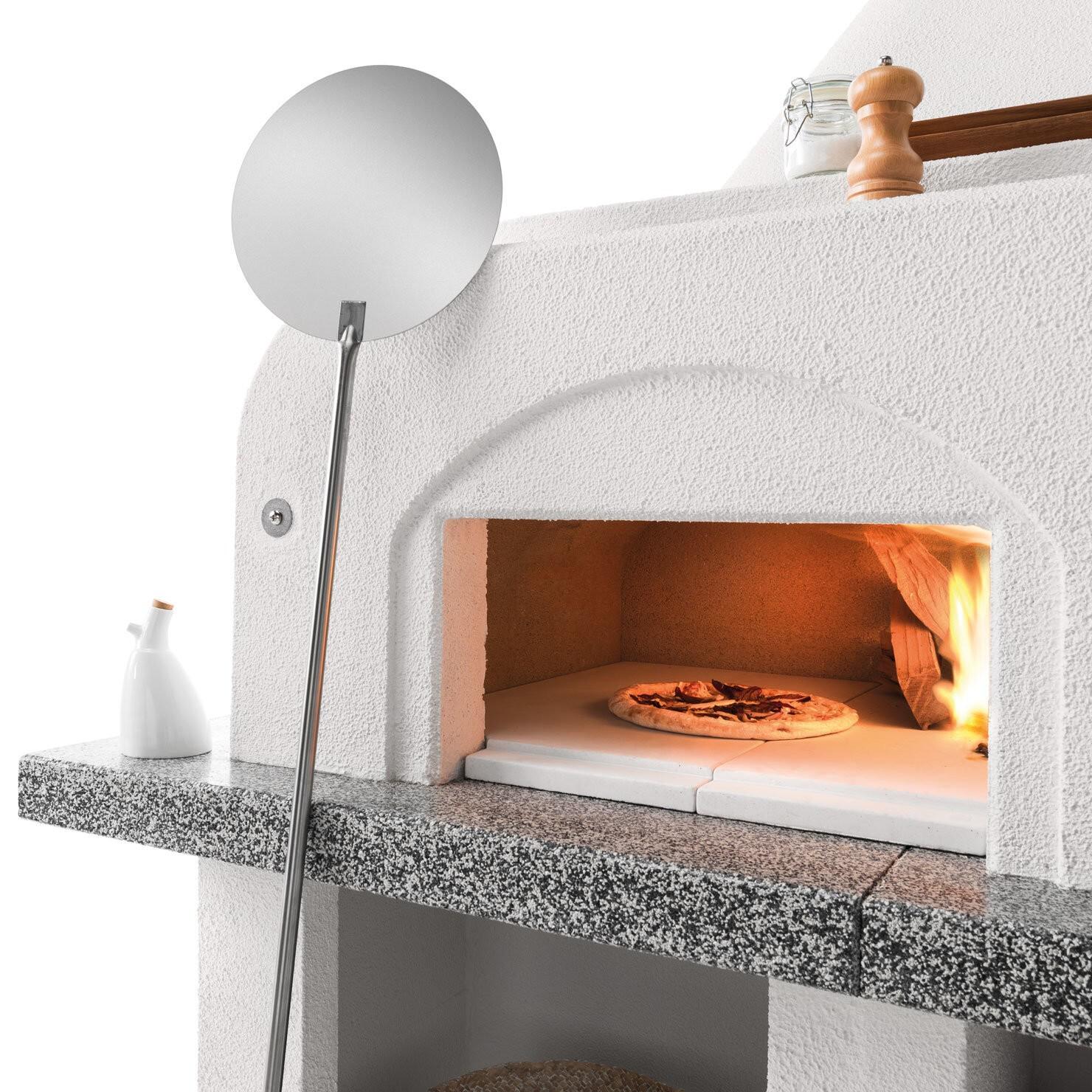 Ta velik vrtni kamin na drva z veliko površino za peko na žaru in krušno pečjo za pico bo hitro postal središče vašega vrta. Izjemno velik žar in prostorna peč na drva sta popolna spremljevalca za nepozabne vrtne zabave - brez kompromisov glede števila gostov.