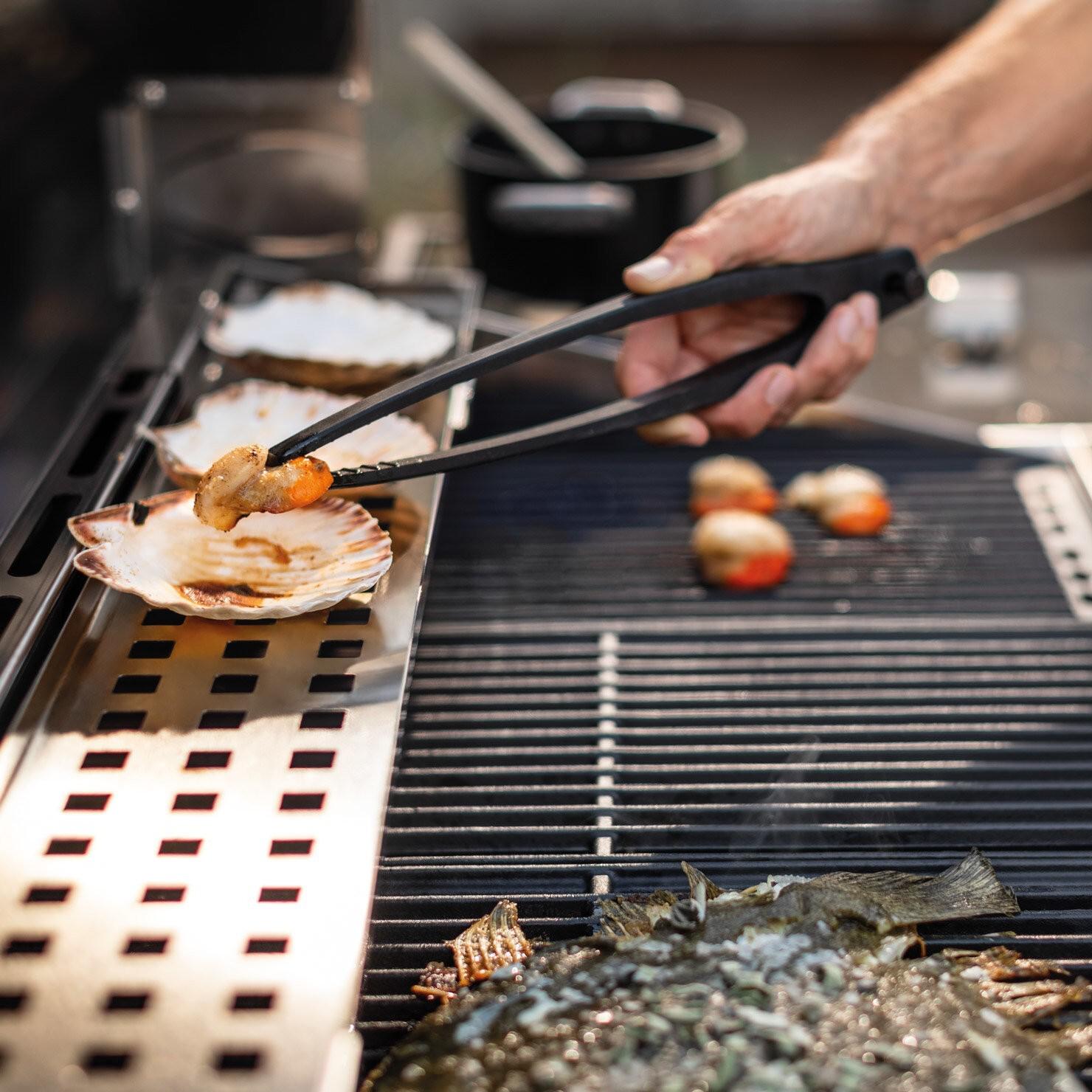• Prostor za pečenje s 3 žari + 1 dvostransko litoželezno emajlirano ploščo za jedi