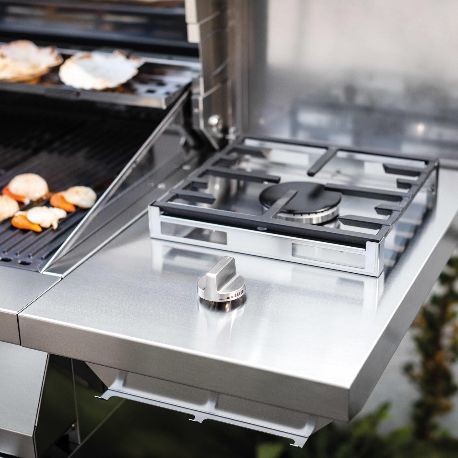 • Stranska polica z gorilnikom iz nerjavečega jekla (2,9 kW) in pokrovom