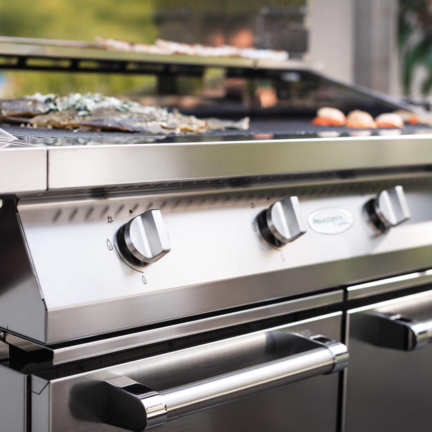Si želite pravo kuhinjsko postajo na prostem? Alain je rešitev, prenosni plinski žar s praktičnimi kolesi, opremljen s tremi žari in litoželezno rešetko ter tradicionalnim štedilnikom za pripravo več jedi naenkrat. V celoti je izdelan iz nerjavečega jekla s pokrovom. Odličen je za vse zunanje prostore, saj je idealen tudi za majhne terase.