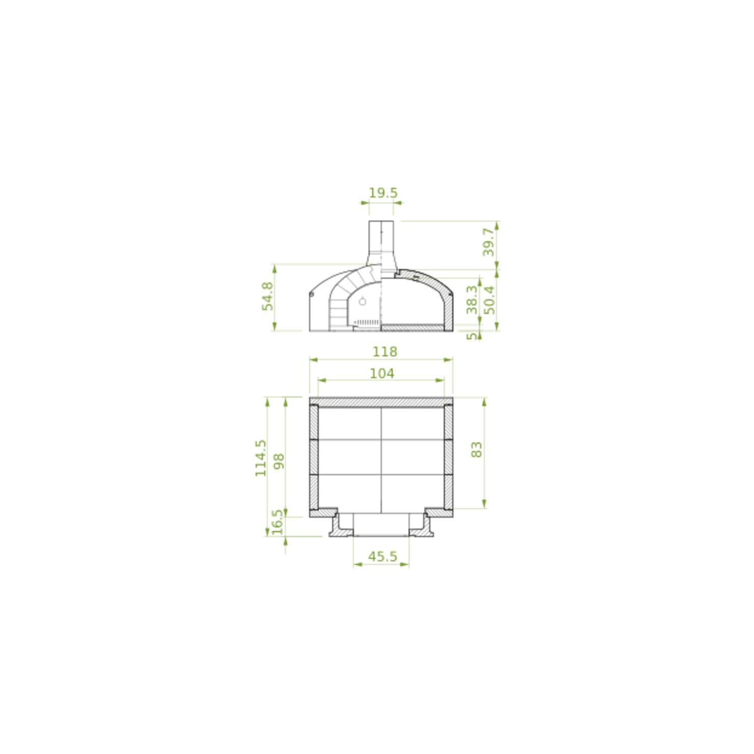 Krušna peč na drva iz ognjevzdržnega betona z visoko vsebnostjo aluminijevega oksida.