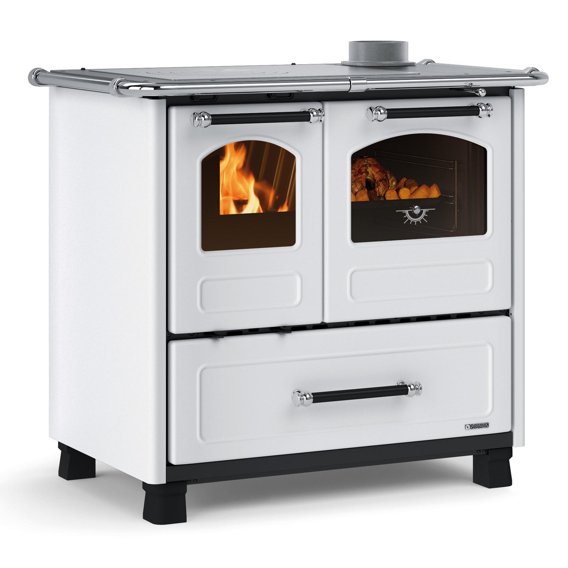 Tradicionalni štedilnik na drva z nogicami za lažje čiščenje. Emajlirana litoželezna obloga in okvir. Notranja obloga kurišča iz litega železa z izvlečnim predalom za pepel. Vrata kurišča iz litega železa z dvojnim steklom, pri čemer je notranje steklo iz keramike.