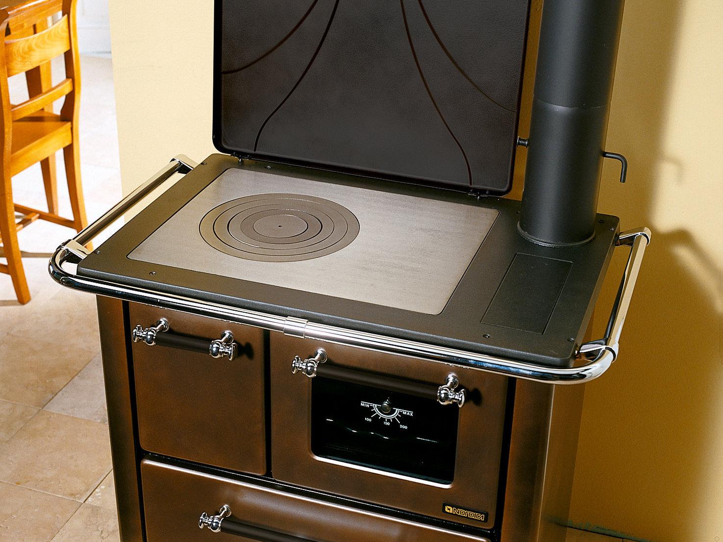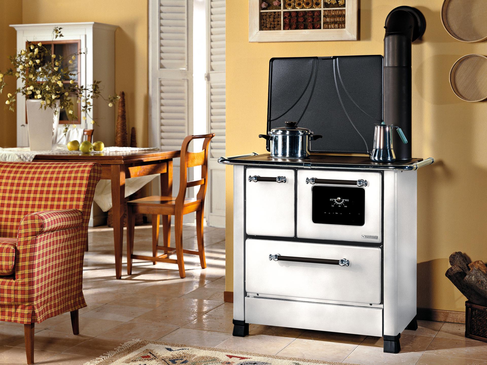 Štedilnik na drva z zunanjo oblogo iz porcelanastega jekla s tradicionalno zasnovo. Kurišče je v celoti iz litega železa. Emajlirana pečica z dvojnimi steklenimi vrati.