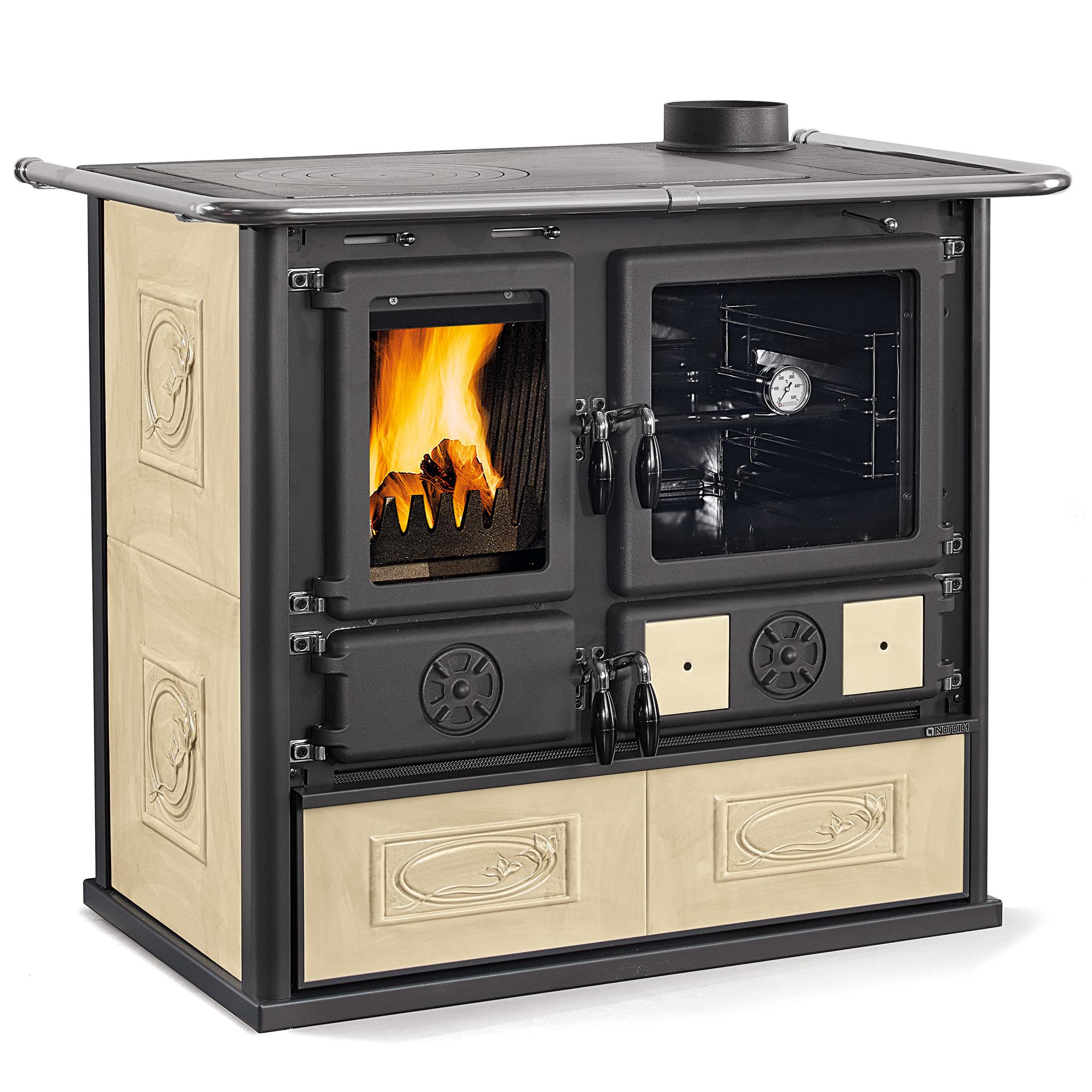 Štedilnik na drva s kuhalno ploščo in obroči iz poliranega litega železa. Vrata in okvir iz emajlirane litine. Notranja obloga kurišča iz litega železa. Nastavljiv primarni in sekundarni zrak za boljši nadzor zgorevanja in nizke emisije.